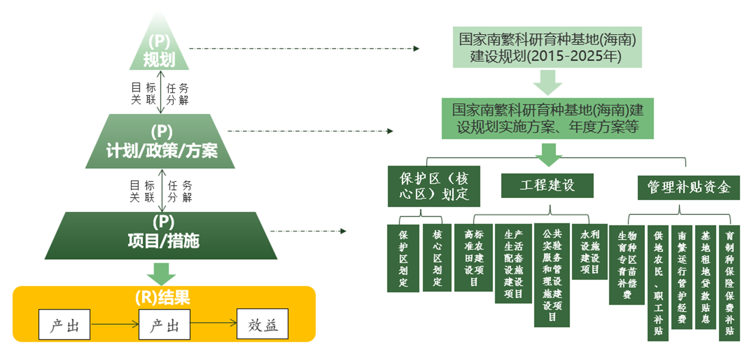 2015年,經國務院批準,原農業部、發改委、財政部、原國土資源部和海南省人民政府聯合印發《國家南繁科研育種基地(海南)建設規劃(2015-2025)》。承擔評估工作后,嚴格對標規劃目標任務和標評估標準,在全面準確掌握規劃實施情況的基礎上,系統梳理取得成效及存在不足,分類提出應對舉措,確保評估結論客觀、公正,評估意見有實用價值。主要特點如下。一是評估創新運用PPPR規劃評估模型,按照“規劃(Plan)一計劃(實施方案)(Program)一項目措施(Project)一結果(Result)”的思路,對規劃內容逐層解剖,繪制邏輯框架圖,對分解后的規劃目標、任務完成、項目工程,政策保障等內容逐項開展評估,全面系統評估規劃實施情況。二是評估采用“三步”量化規劃目標任務完成進度,先對規劃具體項目和舉措進行分項考核后,再對上層級建設任務實施情況進行整體考量,最后作出綜合判斷,確保評估的科學性。三是評估探索采用“核查式”評估方法,通過駐場辦公、座談交流、實地調研等方式仔細核查各責任部門的自評估報告、填寫的調查問卷、項目檔案資料、項目形象進度等,獲得第一手資料,深入摸清落實情況,有效提升評估的準確性。評估工作為推進本規劃如期順利結題提供了有力支撐,為謀劃編制下一輪規劃奠定基礎,收到委托方的高度認可。