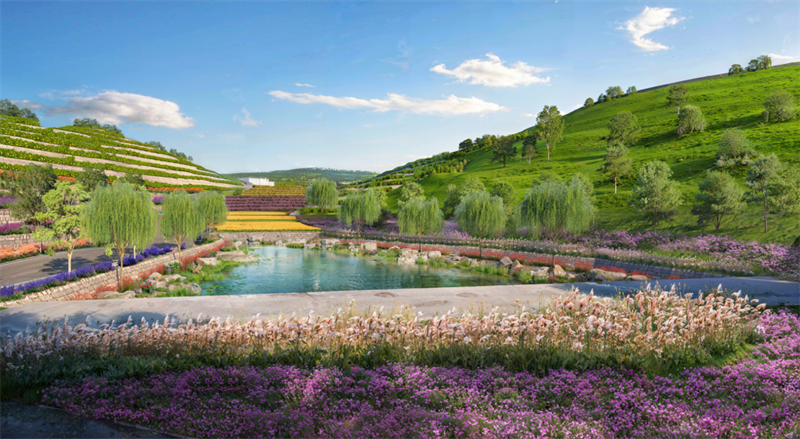 該項(xiàng)目方案具有5個設(shè)計(jì)特點(diǎn):一是,點(diǎn)綴活力、亮眼的景觀小品,增加精神引領(lǐng);二是,利用道路兩側(cè)地形高差,營造獨(dú)特互動空間;三是,優(yōu)化植物品種,打造三季有花、四季多彩的視覺景觀;四是,豐富活動內(nèi)容,塑造“賞綠、享綠、崇文”空間。五是,“以山為骨,以田為脈,以酒為魂,以文為引,木石為材”將梯田與人文相融合。