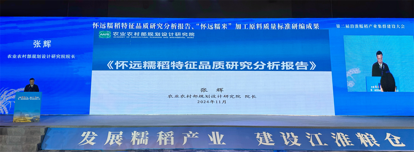 1110日,第二屆沿淮糯稻產業集群建設大會在安徽省蚌埠市懷遠縣召開。我院張輝院長受邀參會并作《懷遠糯稻特征品質研究分析報告》成果發布。安徽省農業農村廳廳長汪學軍、蚌埠市人民政府市長馬軍到會致辭,來自安徽、黑龍江、河南等省份的糯稻(稻米)產業相關科研院所、高等院校、龍頭企業和合作社代表等共200余人參加大會。