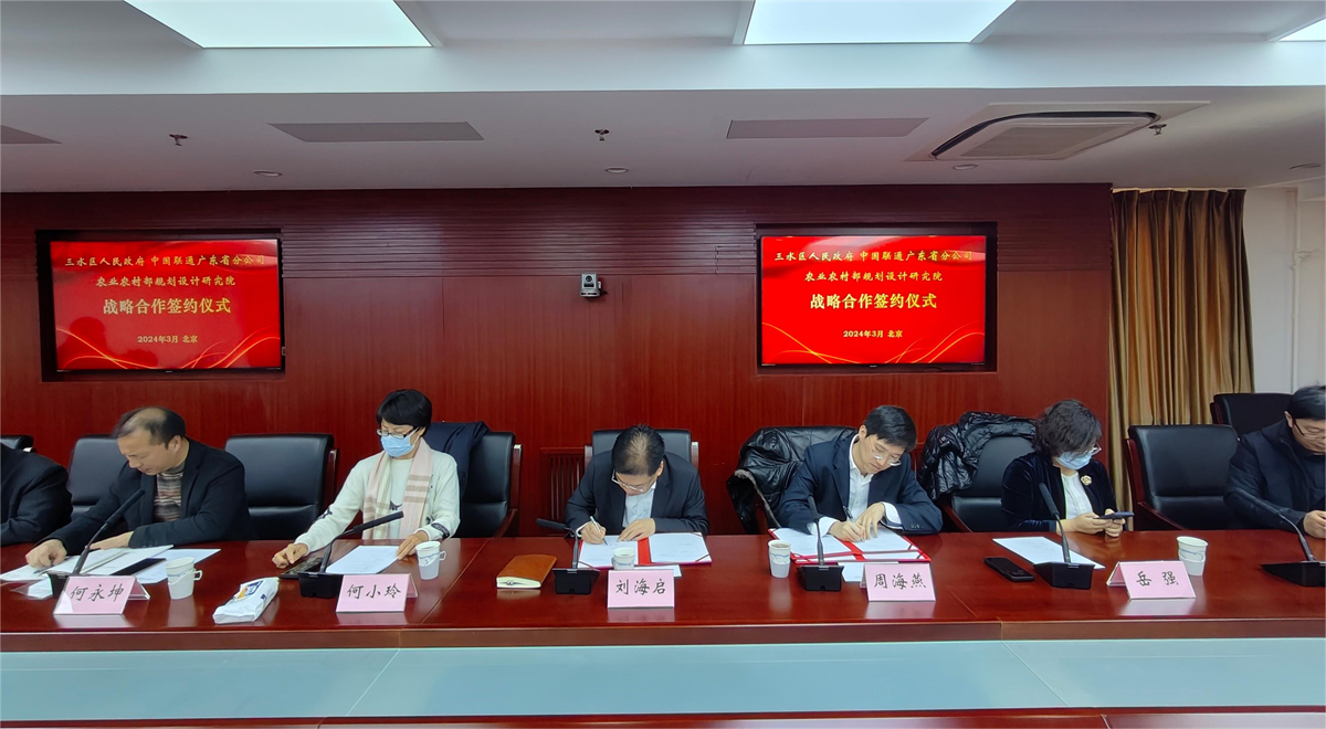 此次簽約將開啟我院與三水區在農業農村領域合作的新篇章。未來我院將與中國聯通公司一道,圍繞推進三水區農業農村產業高質量發展重點難點問題,聚焦智慧農業和數字鄉村技術研究、綜合發展規劃編制、國家戰略項目落地、農村改革創新探索等領域開展深入合作,共同建設合作研究平臺和大數據平臺,共創三水農業強區的美好未來。
