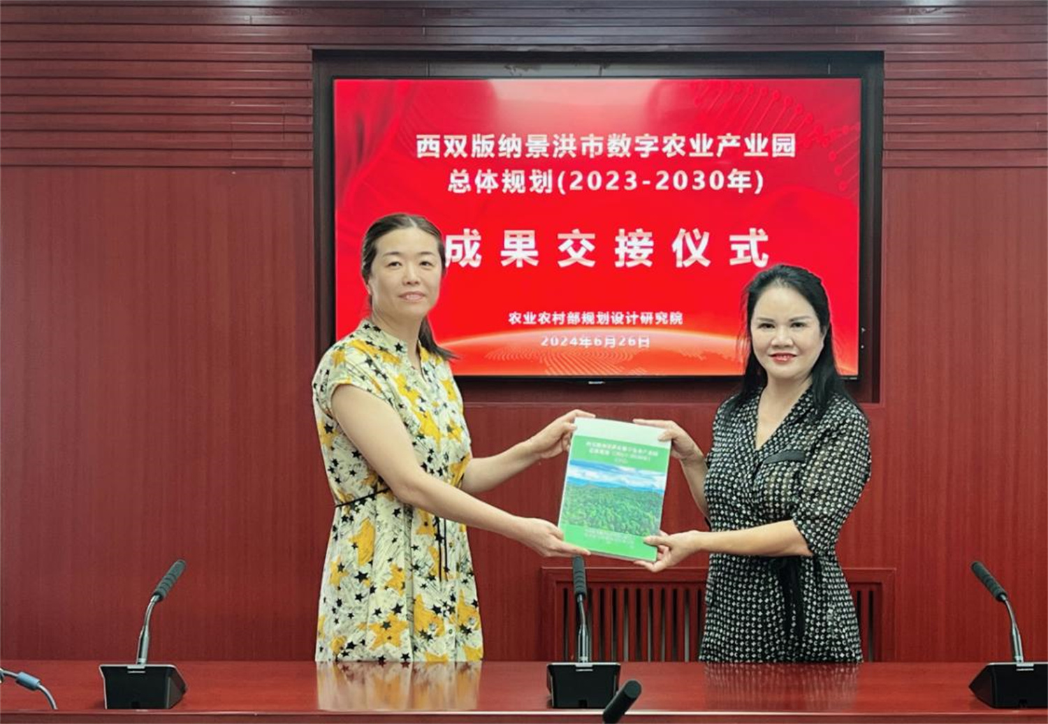 6月26日,《西雙版納景洪市數字農業產業園總體規劃(2023-2030年)》(以下簡稱《規劃》)成果交接儀式在我院順利舉行。項目委托方西雙版納瑞客普數智農業股份有限公司(以下簡稱“瑞客普公司”)董事長劉影梅及管理層人員,院規劃所副所長王麗麗、特聘專家肖運來以及編制團隊成員參加本次活動。