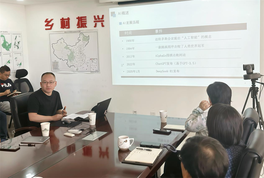 本次活動邀請到北京信息科技大學陳曉宇副教授作專題報告“AI研究應用進展”。陳曉宇副教授詳細介紹了AI技術的基本原理和發展歷程,通過生動案例闡釋了當前主流AI模型與平臺軟件的技術特點和應用場景。在實踐應用部分,報告特別聚焦DeepSeek大模型在農業農村規劃領域的創新應用,詳細交流探討了該技術在規劃編制工作中的本地化部署方案、技術實現路徑和優化策略。