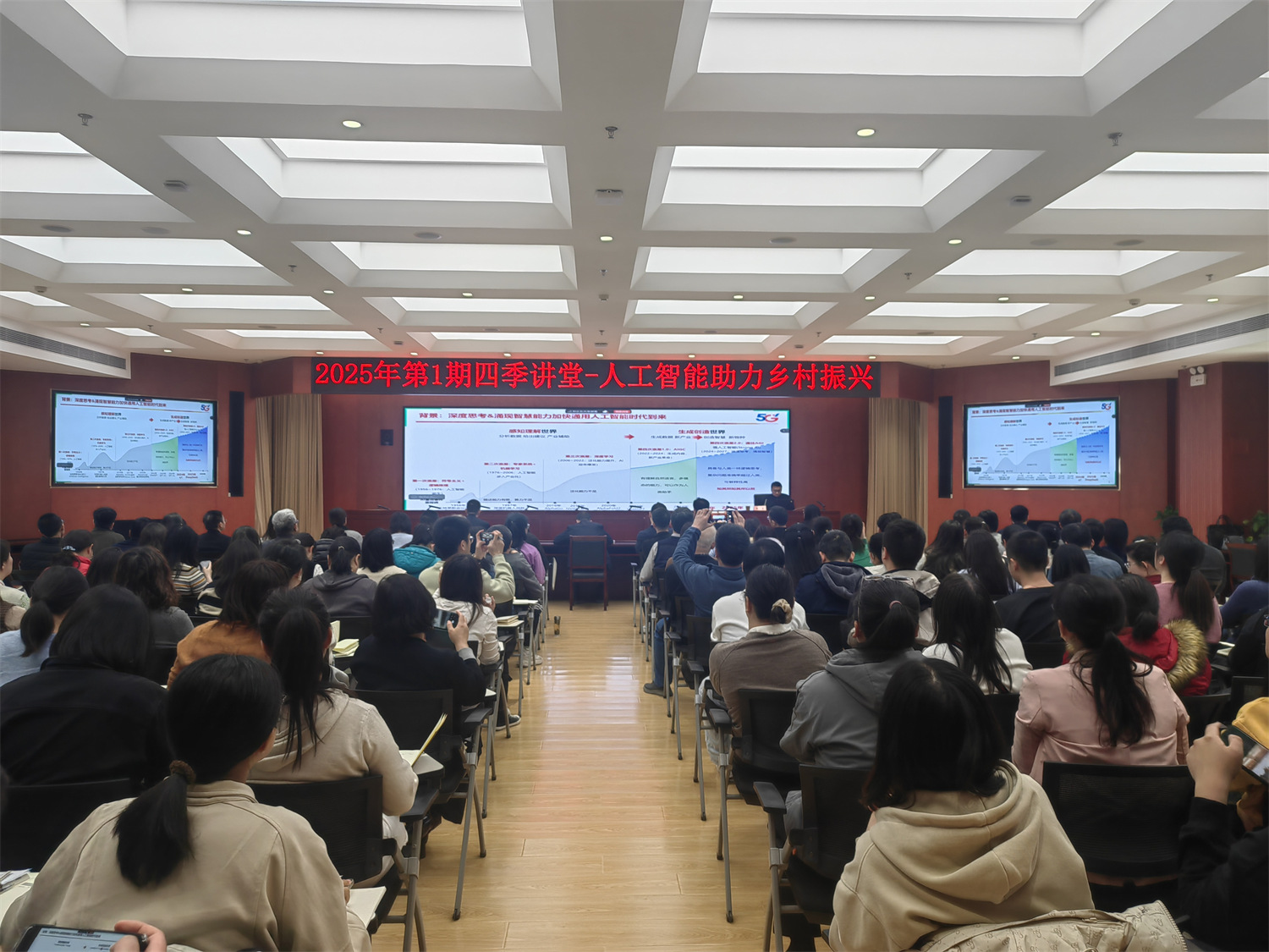 為深化人工智能技術(shù)與農(nóng)業(yè)農(nóng)村融合發(fā)展,落實2025年重點工作部署會精神, 34,我院舉辦四季講堂系列之人工智能助力鄉(xiāng)村振興專題講座。特邀中國電信集團農(nóng)業(yè)農(nóng)村事業(yè)部架構(gòu)師郭磊擔(dān)任主講,院領(lǐng)導(dǎo)及干部職工170余人參會。