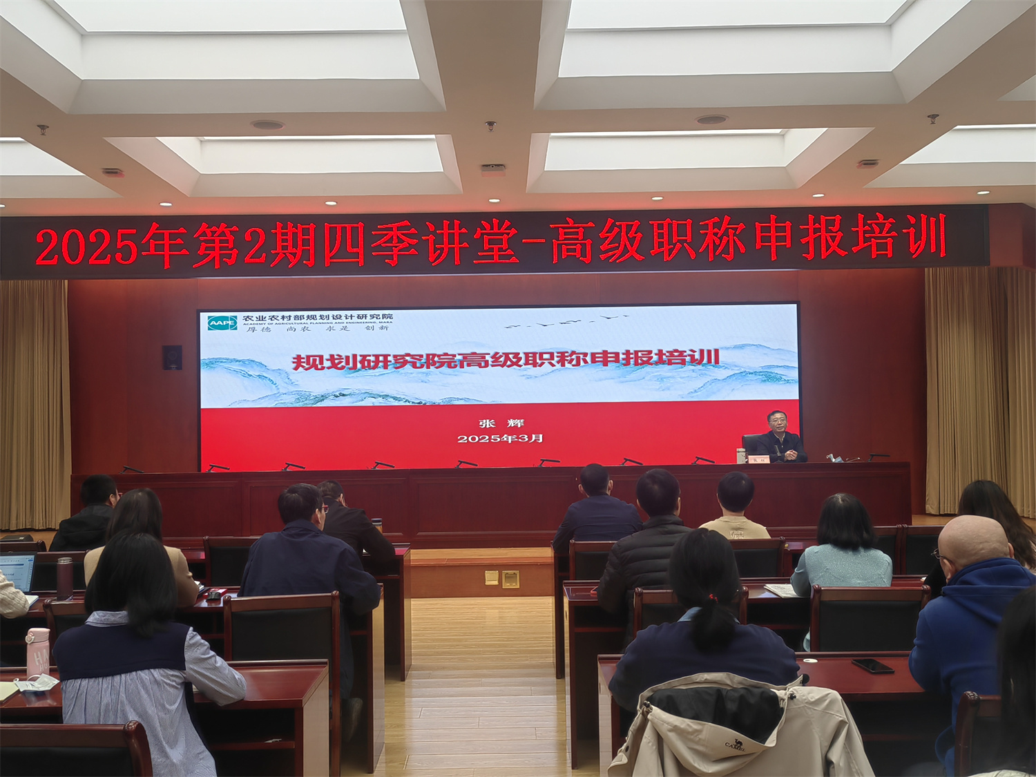 為提升專業(yè)技術(shù)人員能力素質(zhì),提高職稱申報(bào)質(zhì)量,3月27日,我院舉辦了第2期“四季講堂”培訓(xùn)班,主題為高級(jí)職稱申報(bào),張輝院長(zhǎng)應(yīng)邀授課,干部職工共80余人參加。