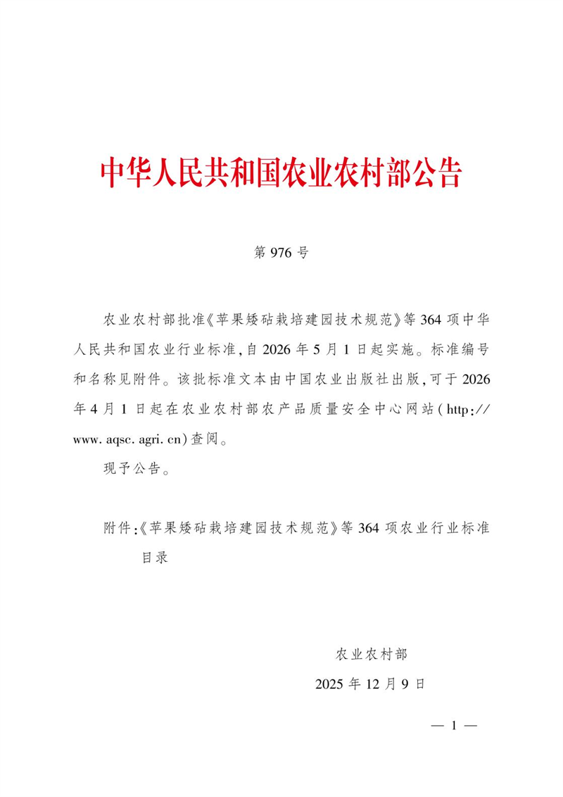我院設施所主持編制的《連棟溫室節能設計規范》,于2025年12月9日由農業農村部批準發布為中華人民共和國農業行業標準,標準號NY/T 5001-2025,自2026年5月1日起實施。